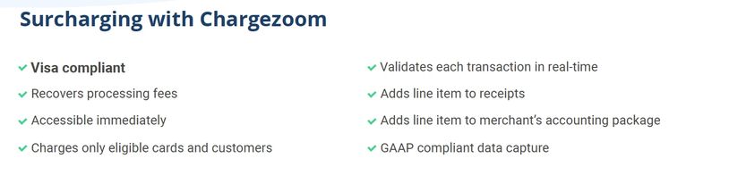 Chargezoom creates GAAP Compliant Invoices that breaks out line item charges to allow for proper posting and accounting of surcharges paid by clients/customers when offered.